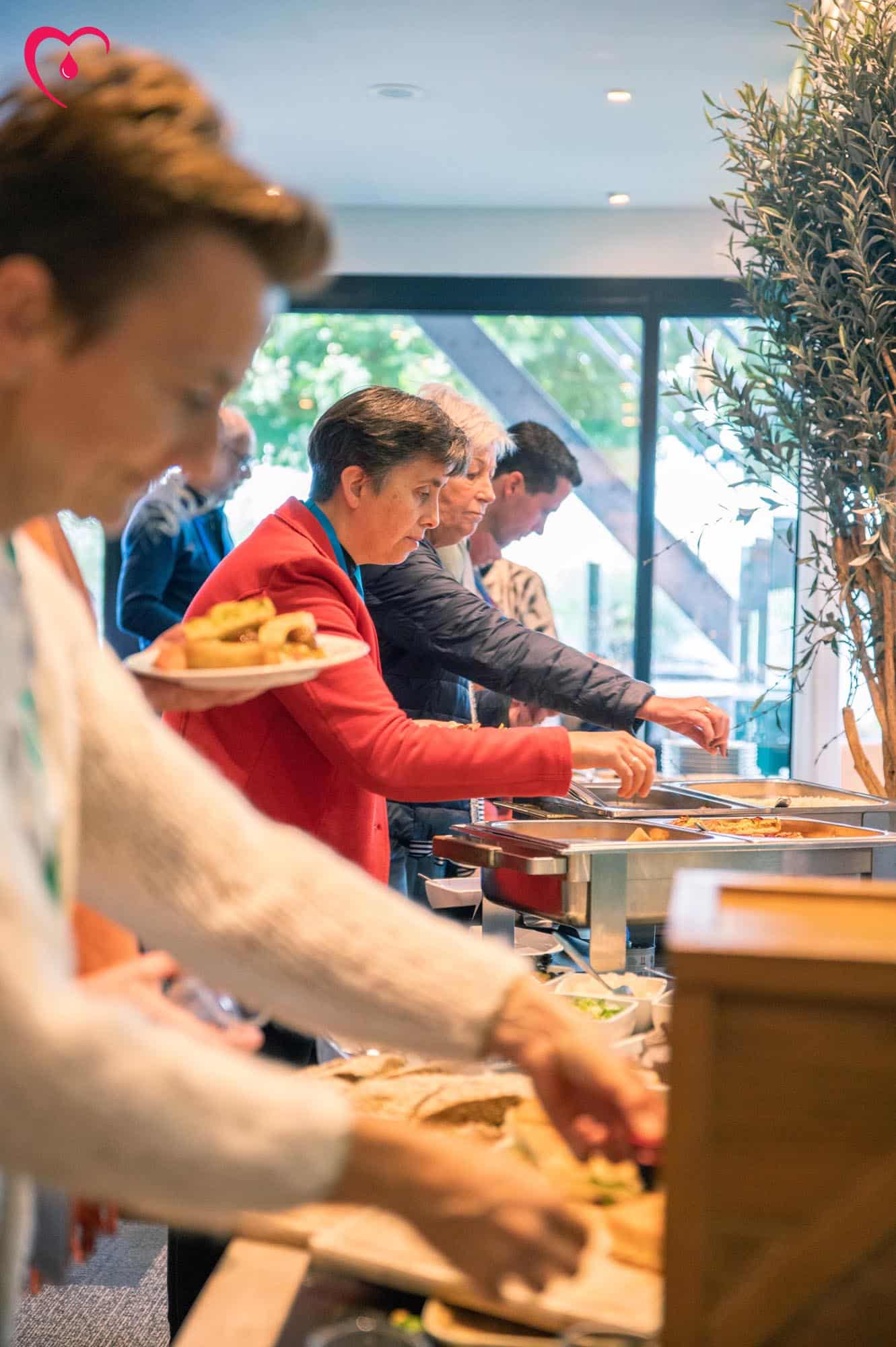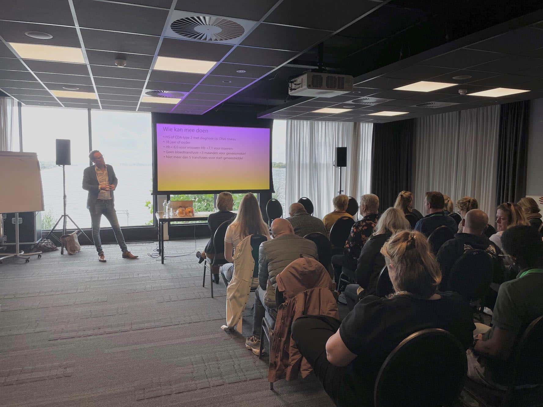 Voor de goedverzorgde lunch was er eerst een algemeen gedeelte voor alle deelnemers. De nadruk lag op wat patiënten met verschillende bloedziekten bindt.