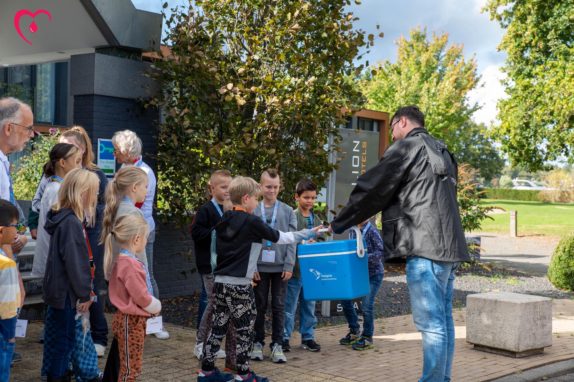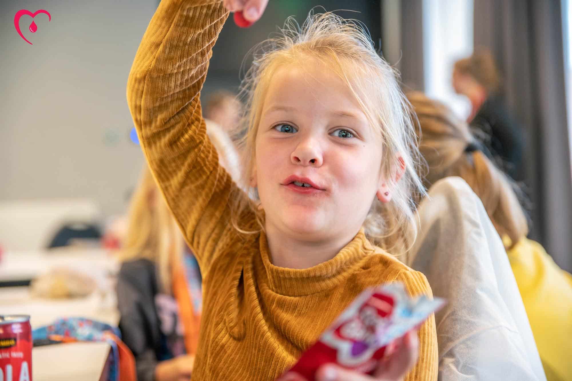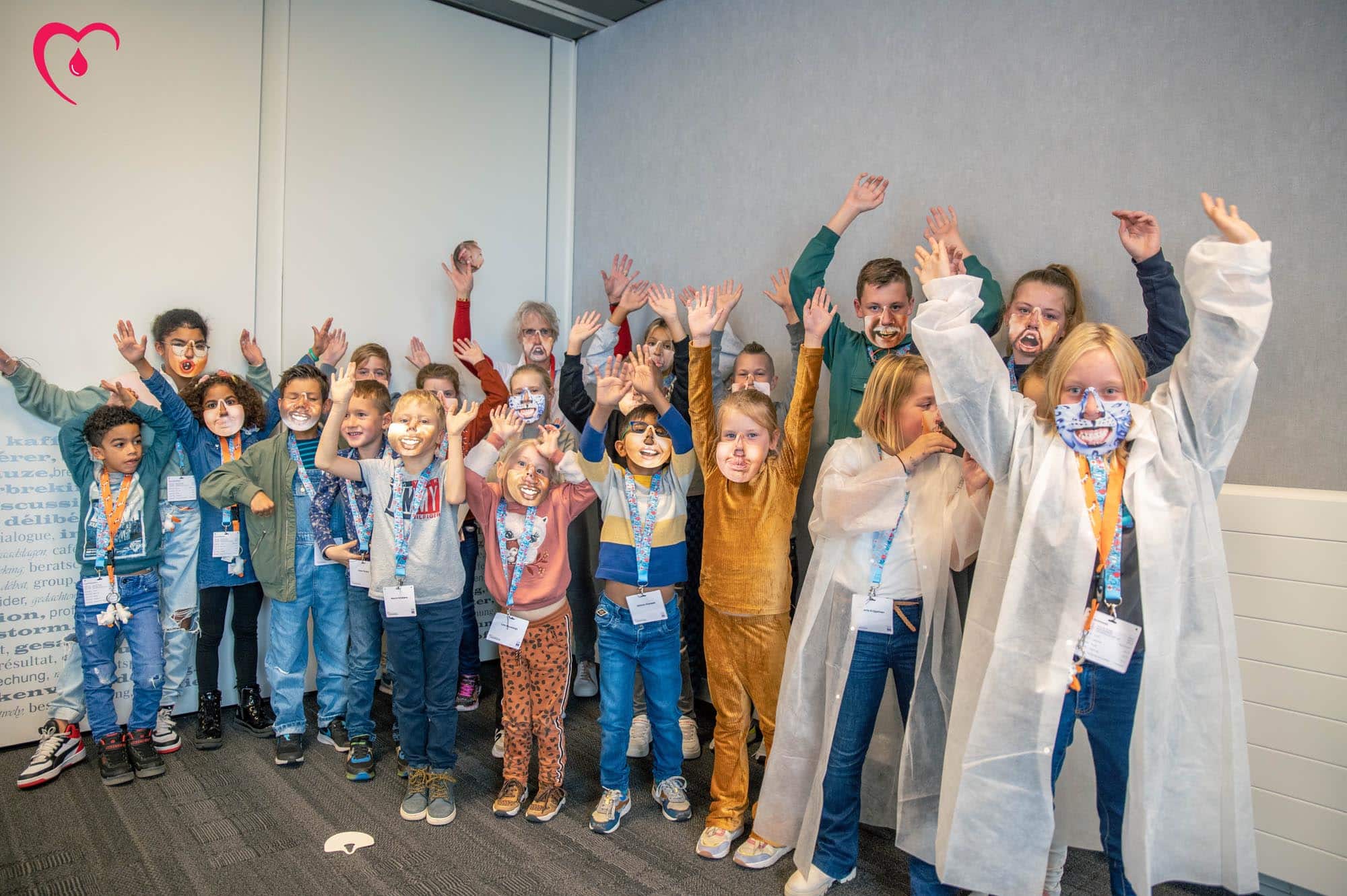 De kinderen begonnen hun dag met een variant op Challenge Day “Over de streep”. In eerste instantie begon het met hele algemene vragen zoals wie een huisdier heeft. Daarna werden de vragen meer specifiek over ziek zijn of het hebben van een familielid met een bloedziekte. Op dat moment werd duidelijk zichtbaar dat zij niet alleen zijn met hun ervaringen, gedachten en gevoelens. Dapper zoals de kinderen eerlijk waren in het beantwoorden van de vragen.